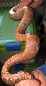 Boa Corn Island L’aptitude des boas empereurs à changer de couleur au cours de la journée est particulièrement remarquable chez les boas Corn Island. Cet animal est le même que celui des deux photos ci-dessus. photo: Christian Wallner |